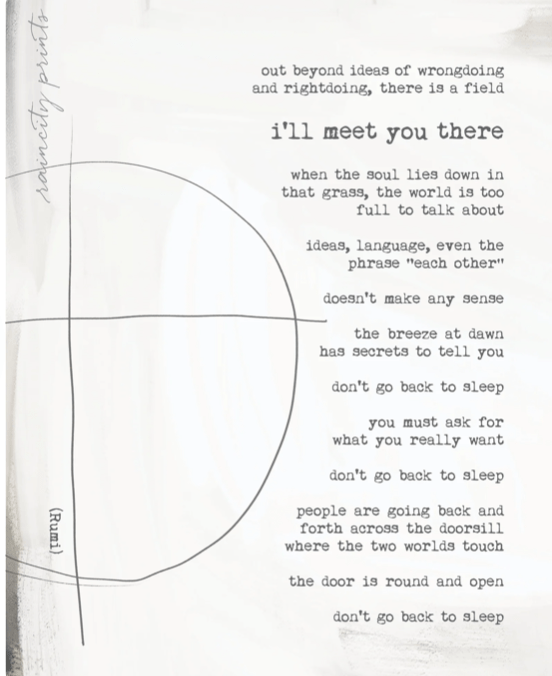 My one ask of you, who will join me, is that you choose to be here. You make the sacred agreement with me and with yourself that you will be present, in whatever capacity you can be, and look at what is shown to you, look at what you find and discover through the lenses of curiosity, wonder, love and appreciation. It is always difficult to say exactly WHAT will happen. My experience of curating and guiding 3 journey’s across 2022 was beyond any expectation I had – in truth I didn’t know what to expect but I knew deeply in my bones that it was true to gather in this way. We yearn for it, our homeland yearns for it and humanity yearns for it. Time spent like this is deep nourishment for the soul. As I type now my fingers are infused with EXCITEMENT because I know that pure utter magic is awaiting us. We will circle over and over – and this will create a spiral of knowing, sensing, feeling, truth and learning. This will ripple out from the centre of our circle through each of us, across our land and into every part of our lives. For – know this – transformation is not an adornment to your current existence. New things are always on offer when something old falls away; or when we explore ourselves from new perspectives, in new ways. For human connection and the love of humanity we will dive deeper and deeper into community, unity and every part of our inner landscape. It is my aim and intention to show up for you authentically – as a real me, and create sacred spaces for you to find your own way. I am not here to show you right and wrong, good and bad – I am here to open you to the full experience, both sides of the same coin and lead you with so much love into the field of all possibility, in the most grounded way. This weekend exploration will enable us to see life through a new lens – to know and believe that no experience is wasted and that sometimes being human is hard and painful, but for every painful part there is something so utterly beautiful. I am here for it all and invite you to be here for it all too. For me, the mystic Rumi here sums up how I feel a lot of the time about this experience of earth school: